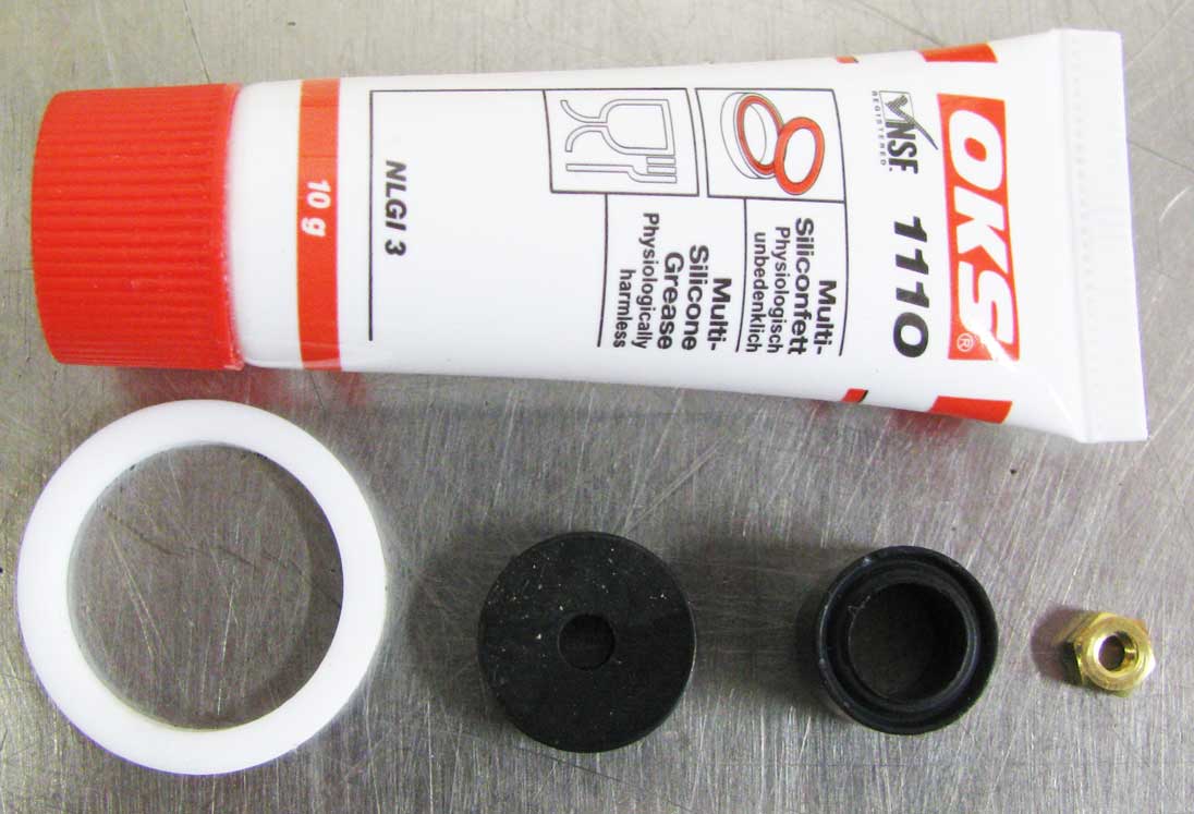 Komplett Reparatur Anleitung (ohne Abbildung), Druckdichtung, Schaftdichtung, M3 Verschraubung, Teflondichtung Hahnstangenüberwurf, Silkonfett (ca. 4Gramm).
