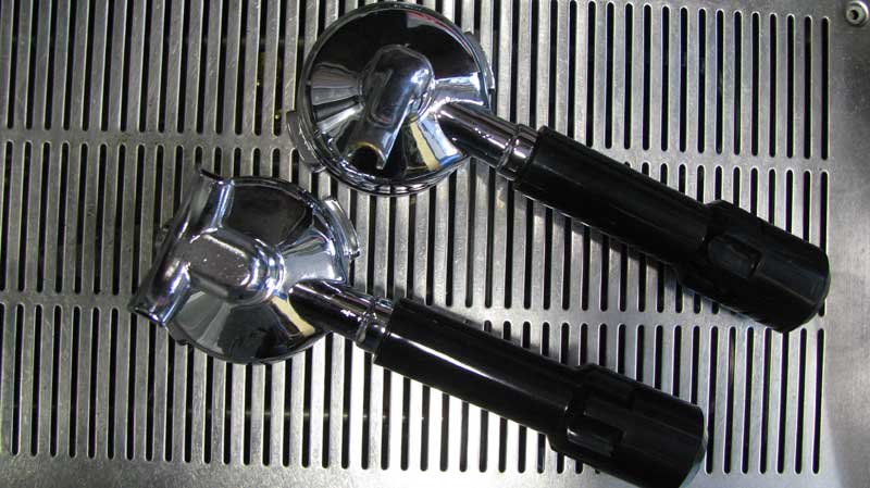 Die Maschine wurde wieder auf einen guten technischen Standard gebracht. . Wir haben die Maschine mit zwei unterschiedlich dimensionierten Düsen der Dampflanzen siehe auch den eingestellten YouTube Film) ausgestattet, was es Ihnen erlaubt kleine und große Milchmengen leicht cremig aufzuschäumen. Mit der Zweilochdüse rechts, können Sie auch ohne Baristakurse für Fortgeschrittene mit Auszeichnung absolviert zu haben, Milchmengen für ein einzelnes Getränk cremig aufschäumen ohne die Milch zu Überhitzen! Bitte achten Sie auf den unterschiedlich starken Dampfauslaß an den jeweiligen Düsen. Rechts ist eine 2 Loch Düse, links eine 3 Loch Edelstahl Düse verbaut, was im eingestellten Video gut zu sehen ist.