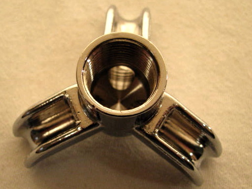 Dreifachauslauf offen passend für Siebträgerhandgriffe von Espressomaschinen mit 3/8 Zoll Einschraubgewinde am Auslauf (3/8 Zoll = ca. 16,3mm). Höhe des Auslaufs 32mm. Dreifachauslauf universal passend für professionelle und semiprofessionelle Siebträger Espressomaschinen außer z.B. original Handgriffe von Cimbali. Der Auslauf eignet sich in Kombination mit einem 21 Gramm Siebeinsatz zum einen zur gleichzeitigen Herstellung von drei Espressis oder einem Espresso und einem doppelten Espresso oder z.B. in Kombination mit einem Singelsiebeinsatz zum direkten Befüllen des Latte Machiato Glases.
