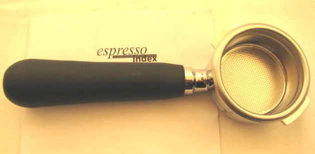 Rancilio Ersatzteil Siebträgerhandgriff komplett bodenlos. Der Handgriff ist mit Spannring und 21 Gramm Sieb ausgestattet und eignet sich, vorrausgesetzt der Mahlgrad ihrer Mühle stimmt, bestens um zu sehen wie unter dem Handgriff die Crema satt zusamenläuft. Bitte beachten Sie hierzu meine entsprechenden Ratgeber.